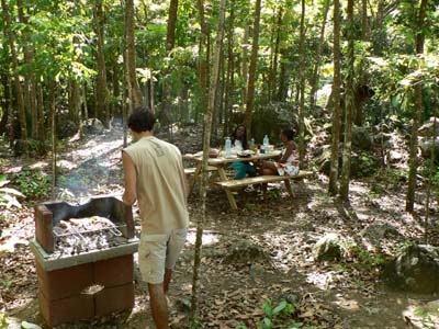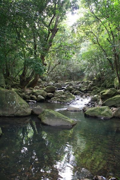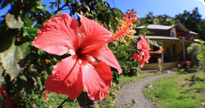 In a 2700 m² park like setting, under the mango trees, the coconut trees and towering mahoganies, let the bubbling of the stream lull you to sleep in your hammock. This small corner of paradise is set between the river Ferry and its feeder "Riviere Maleville". |