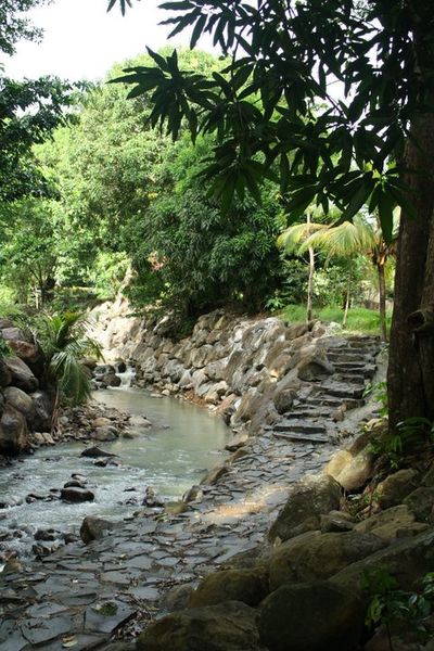In a 2700 m² park like setting, under the mango trees, the coconut trees and towering mahoganies, let the bubbling of the stream lull you to sleep in your hammock. This small corner of paradise is set between the river Ferry and its feeder "Riviere Maleville". |